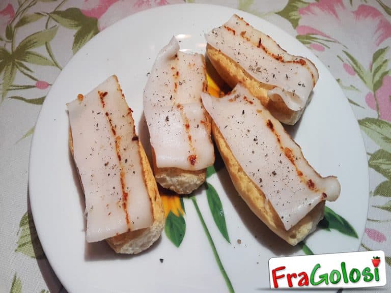 “Vediamo come si fanno i crostini al lardo, un antipasto della cucina italiana, per 4 persone, che si prepara in circa 5 min: è una soluzione veloce, semplice ed economica.”