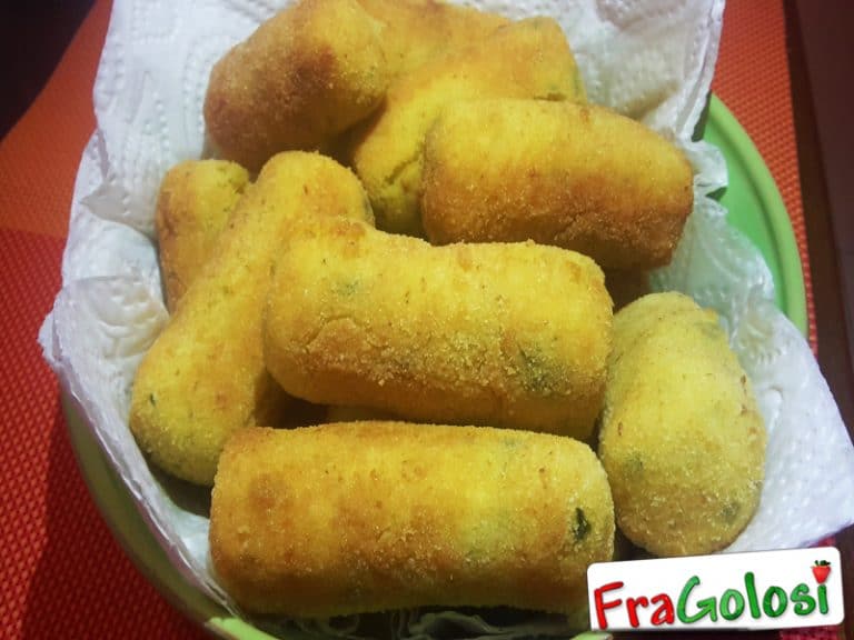 Formare con l’impasto le crocchette di circa 2 cm di spessore e tagliatele a tronchetti lunghi 5 cm.