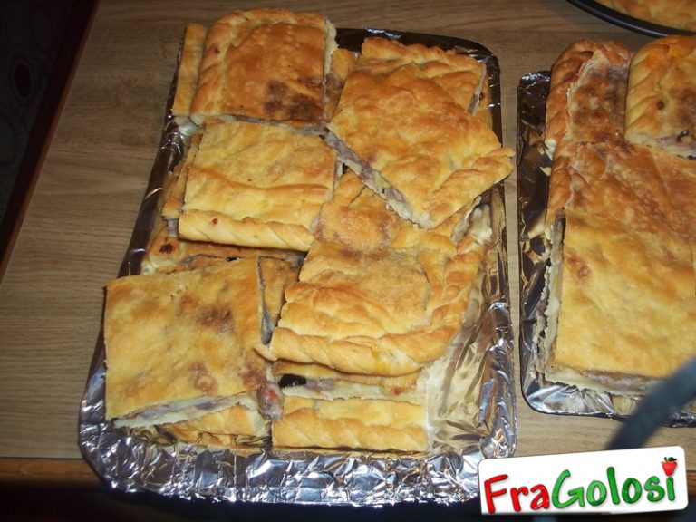 Consiste in una torta rustica preparata con la pasta da pane e variamente farcita (broccoletti, primo sale e acciughe , “sparacelli” (simili a piccoli broccoli) e tuma oppure broccoletti, tuma, acciughe e olive nere denocciolate, etc).