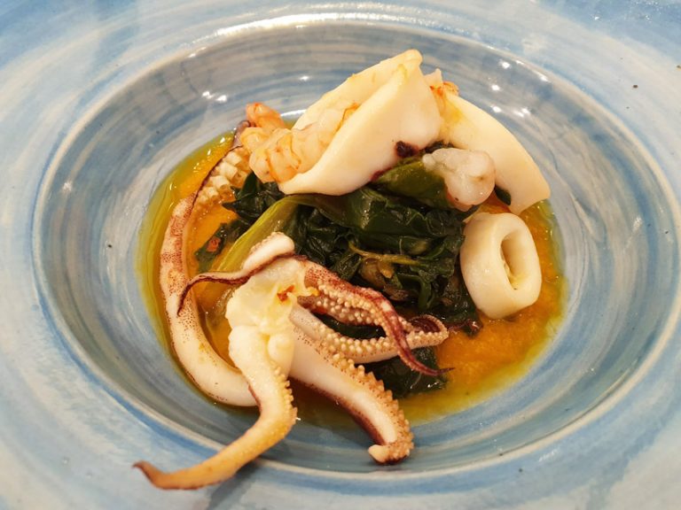 Contemporaneamente alla cottura della crema di zucca, procedere con la preparazione dei calamari con le bietole.