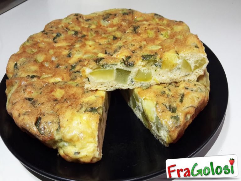 Coprire con un coperchio e fare cuocere a fuoco lento, agitando diverse volte la padella e avendo l’accortezza di cambiare spesso la posizione della padella rispetto alla fiamma, in modo che la frittata abbia un colore uniforme.