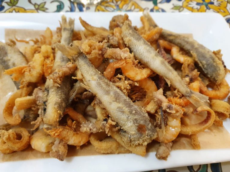 Per non fare abbassare la temperatura dell’olio, friggere pochi pesci alla volta iniziando dai più grandi.