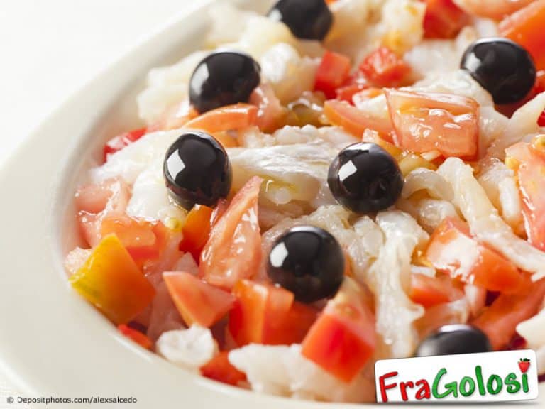 Prima di servire, lasciare riposare l’insalata di baccalà, per alcune ore, in luogo fresco.