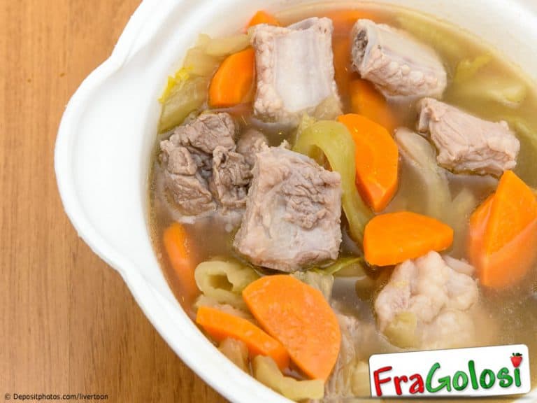 500 g di costine di maiale, 500 g di spalla di maiale, 2 cavoli verza, 6 carote medie, 3 salsicce affumicate, olio extravergine d’oliva, sale e pepe.
