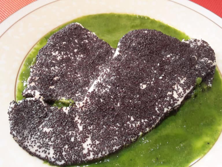 Avere l’accortezza di pressare leggermente il pesce spada, in modo che i semi di papavero rimangano attaccati su tutta la sua superficie.