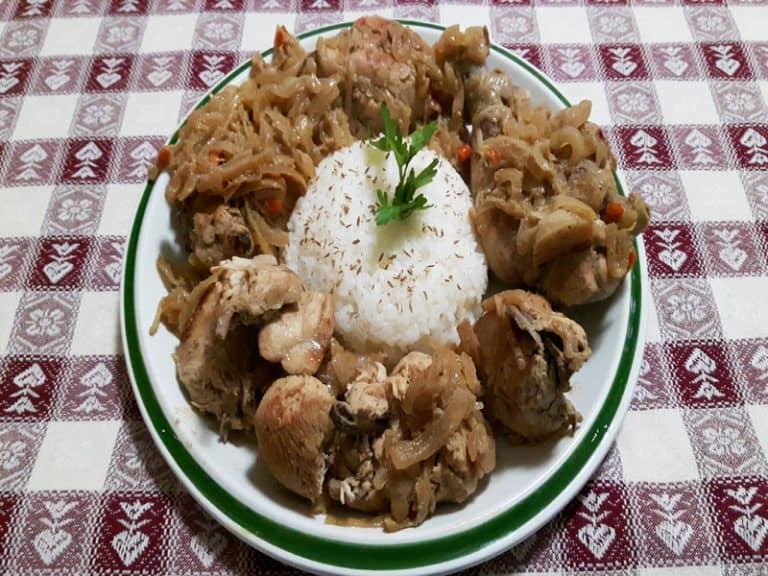 La ricetta da noi suggerita viene preparata con del pollo marinato, cotto lentamente con cipolle, peperoncino piccante, aglio, senape e succo di limone.