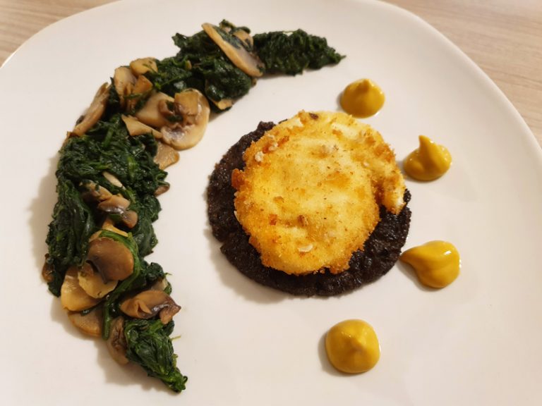 Accompagnarlo con i funghi e gli spinaci saltati.